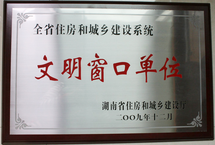 - 2009年12月被湖南省住房和城鄉(xiāng)建設(shè)廳評(píng)為“全省住房和城鄉(xiāng)建設(shè)系統(tǒng)文明窗口單位”
